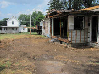 We've almost completed demolition on the addition part of the house. The main part of the house will be staying for a while. After we clean up what's laying around, the next phase will be squaring off the foundation. That will happen after precise measurements are taken, excavation is done, etc. So, after tomorrow's cleanup, the house will mostly likely sit for a little while. That's fine, because DH goes back to work on Thursday.